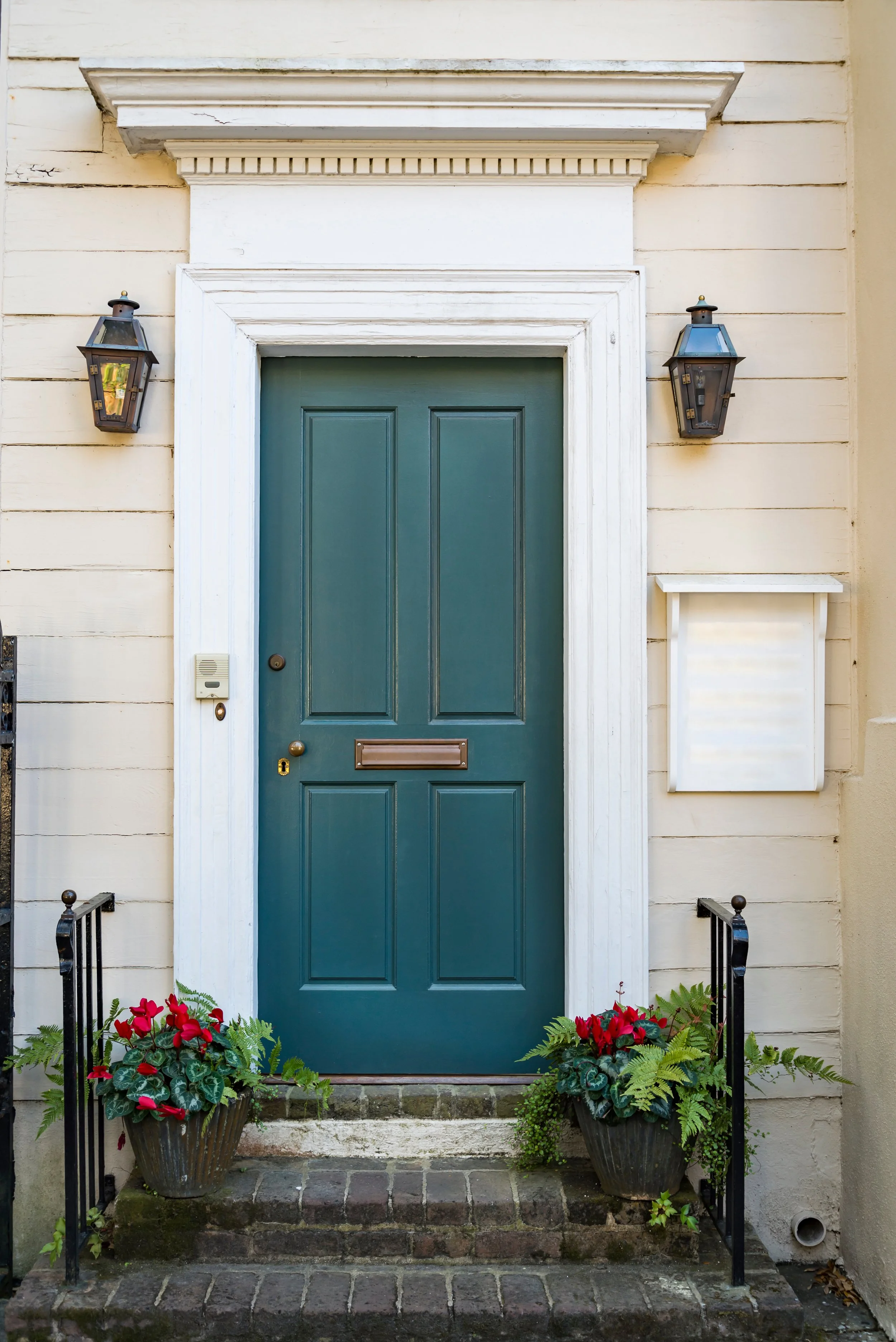 “If it has sidelights or a transom, I like to do the entire thing the door color — it makes the door the same scale as the house — it just makes it more of a presence,” Jenkins said.